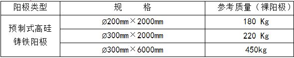 预包装高硅铸铁阳极采用Φ50×1500mm或Φ75×1500mm高硅铸铁阳极、镀锌铁板及焦碳填料等主材料制成。主要用于各大型埋地金属构筑物的保护与防腐蚀。其中高硅铸铁阳极按照设计技术规格书及相关标准生产,产品化学成分和性能达到英国BS标准水平。具有消耗低、接地电阻小、电位稳定、利用率高、施工方便、防破坏性强等特点。
